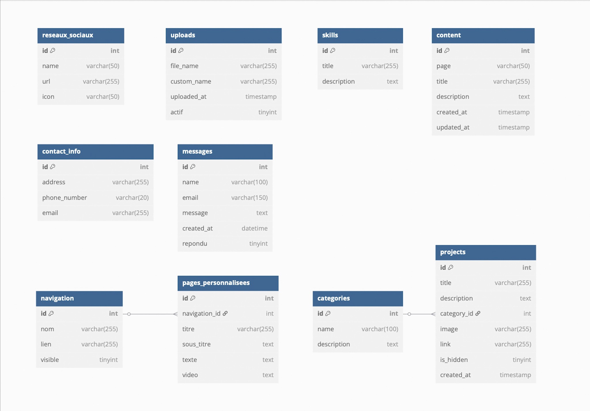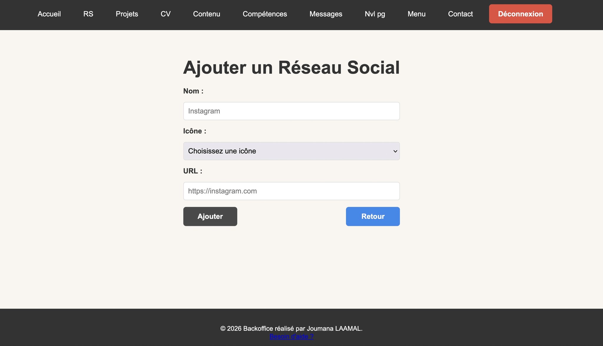 Ce projet consiste en la conception et le développement d’un portfolio dynamique avec un back office personnalisé. L’objectif était de mettre en place un système permettant de gérer le contenu du site via une base de données / partie admin.